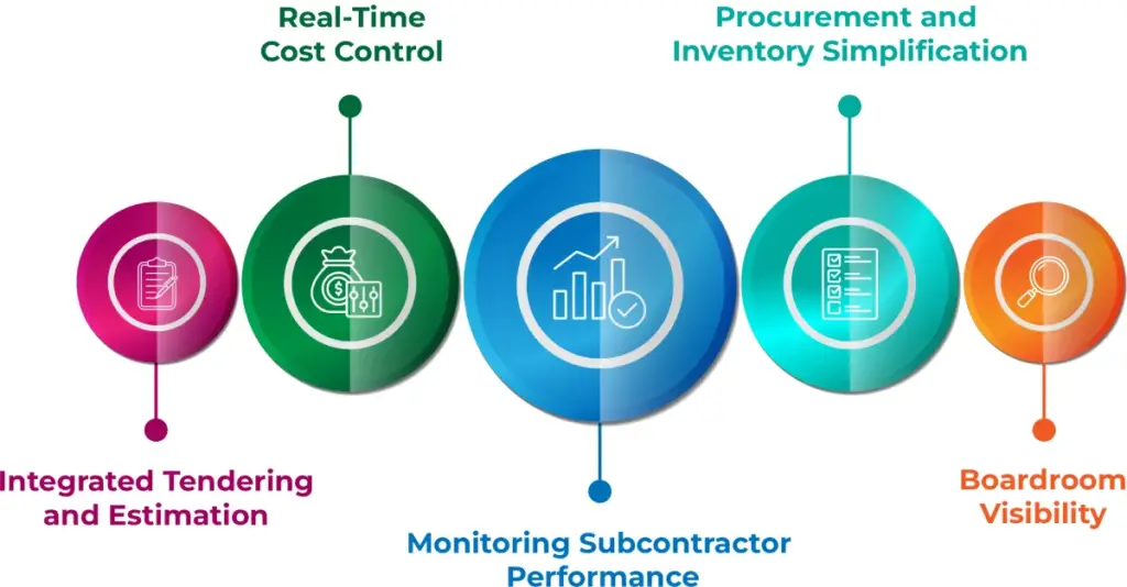 ERP dashboards offer real-time feedback on subcontractor performance, productivity, and payment milestones, enhancing accountability.
